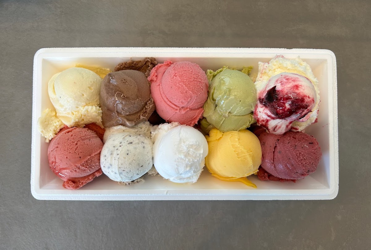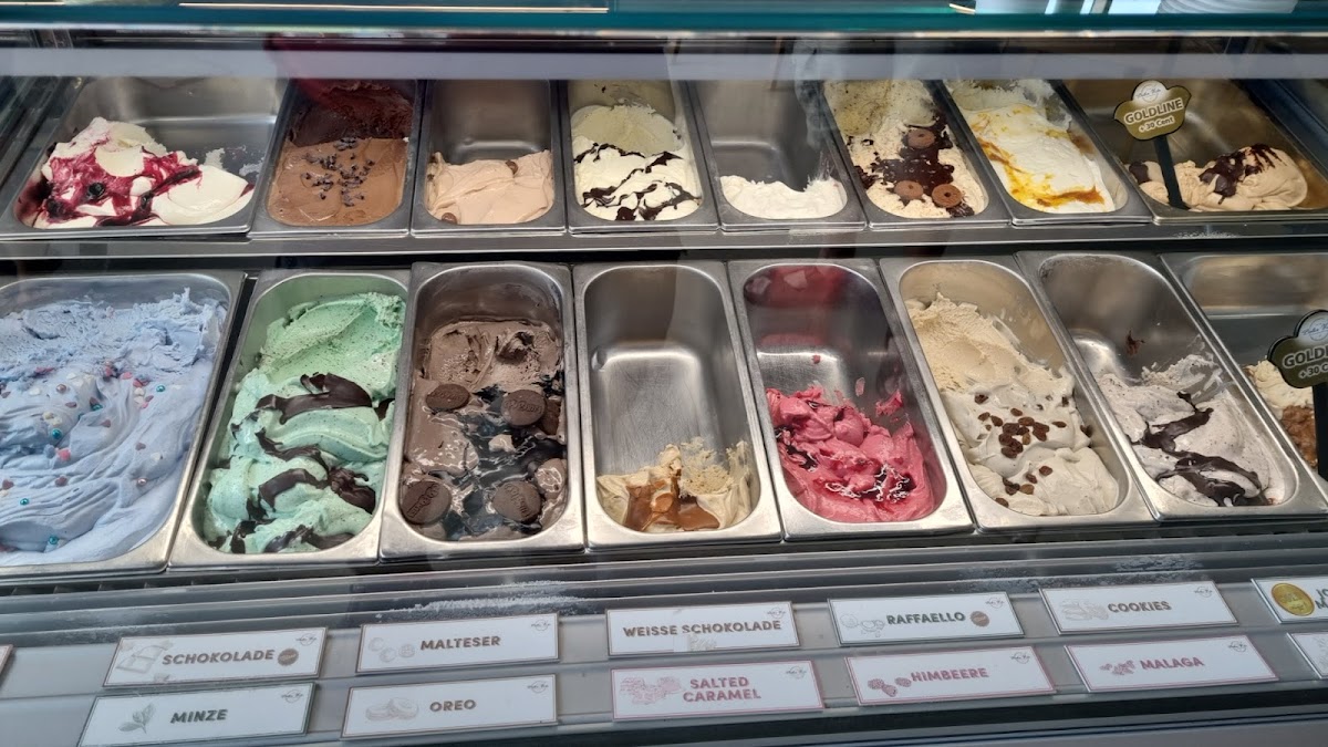 Das Eis hat wirklich sehr gut geschmeckt. Auch die Auswahl an Eissorten war wirklich umfangreich. Leider gibt es viel zu wenig Sitzplätze draußen und drinnen. Es war sehr viel los, daher galt auch Selbstbedienung.